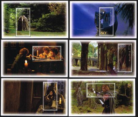 | 2001 Lord of the Rings (LOTR) 'Fellowship' set of six mini-sheets. UHM. Catalogue value $50.
