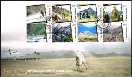 | 2004 Lord of the Rings (LOTR). 'Home of Middle Earth' block of eight on FDC. |