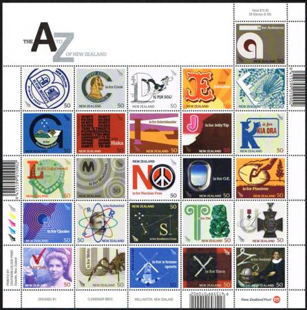 | 2008 A to Z of New Zealand sheet of 26 stamps. UHM. SG 3060a. |