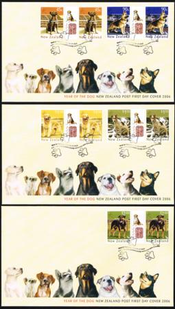 | 2006 Year of the Dog. Fine used set in gutter pairs on three FDC.