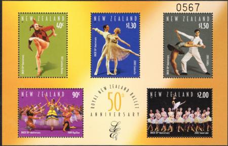 | 2003 Royal NZ Ballet 50th Anniversary. Limited Edition special miniature sheet. Contains the set of five stamps. Not Generally available at Post Offices. |
