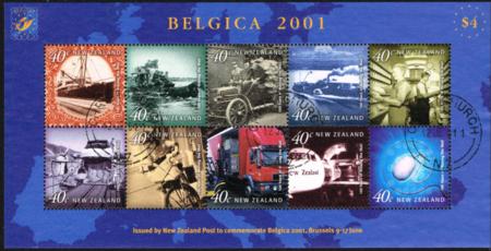 | 2001 'Belgica' Stampshow (delivering mail) mini-sheet. Fine used (2001). CP SM701-710B, SG MS2424.