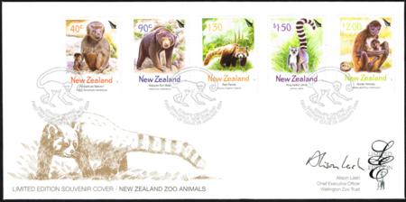 | 2004 Zoo Animals/Year of the Monkey. Used set of five on special Limited edition FDC. Scarce.