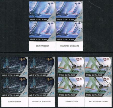| 2002 America's Cup. Fine used set of three in matching blocks of four. SG 2538/2540. |