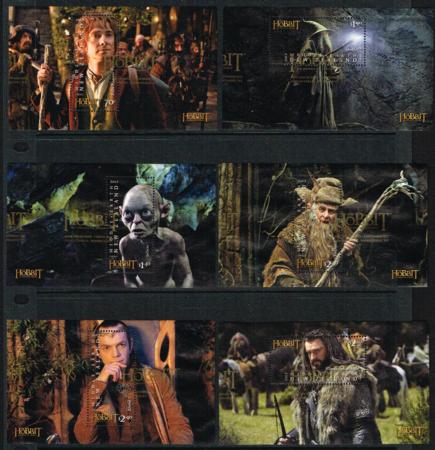 | 2012 Hobbit. VFU set of the six mini-sheets. Slight wrinkles on a couple due to soaking off covers. CP SM1354/1359.