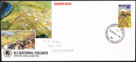 | Illustrated DL cover advertising the 'N.Z. National Fieldays' at Mystery Creek, Hamilton (16 June 1978). |