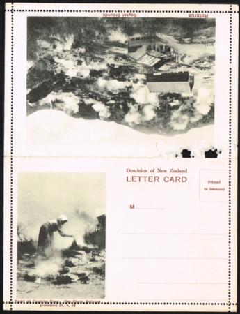 | Dominion of New Zealand [Illustrated] Letter Card. Unused. Two Rotorua scenes. Snail damage on back. |