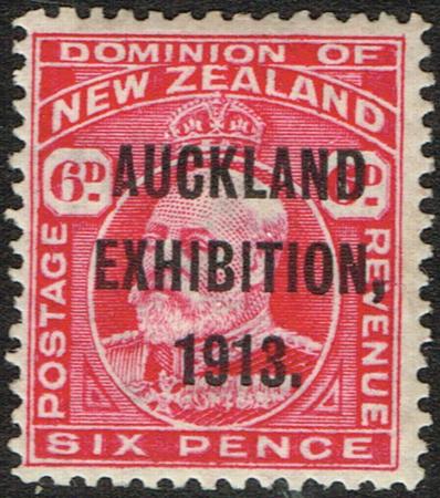 | 1913 Auckland Exhibition. 6d VLHM. Left centred. CP S8a, SG 415. |