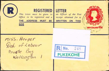 | QEII Registered Postal Stationery. Samuel EF.24a. Used. Opened out.