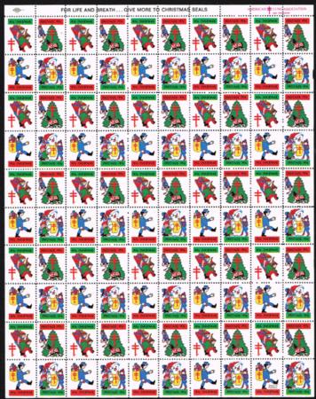 | USA cinderella label. UHM sheet of 100 1974 Christmas seals. |